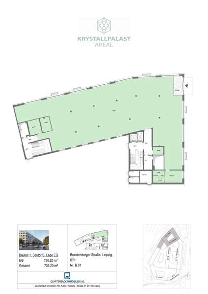 Die herausragende Lage macht das Neubauprojekt zu einer der wohl bedeutendsten Projektentwicklungen in Leipzig und Umgebung. Das Quartier bietet eine hohe Visibilität und eignet sich aufgrund der hohen Flächenkapazität für große Unternehmen, die sich in einer Toplage ansiedeln möchten.