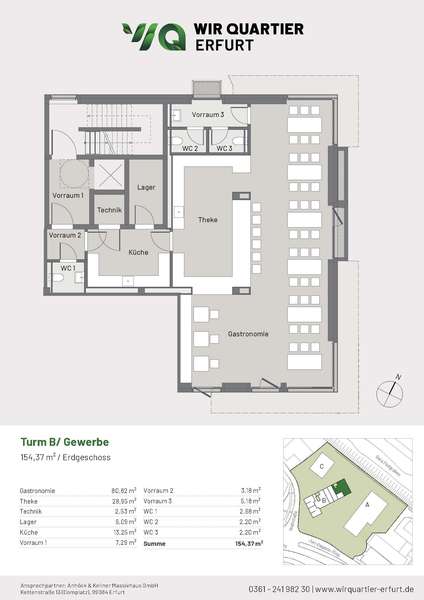 Das WIR-Quartier stellt für Erfurt eine einmalige und in dieser Form einzigartige Bauweise dar. Die Kombination aus Moderne, Nachhaltigkeit und Innovation ermöglicht eine effiziente und komfortable Arbeitsatmosphäre. Das Ensemble setzt sich aus zwei markanten Wohntürmen sowie einer Stadtvilla zusammen. Mit einer Anzahl an Gewerbeeinheiten bietet das Quartier eine Reihe von Möglichkeiten für Sie und Ihr Unternehmen. Ganz gleich ob Büroräume, Praxen oder Gewerbe-Handel, Ihnen stehen optimal ausgestattete Räumlichkeiten zur Verfügung. Die Arbeitsbereiche können individuell gestaltet werden, so wie Sie und Ihr Unternehmen es brauchen!